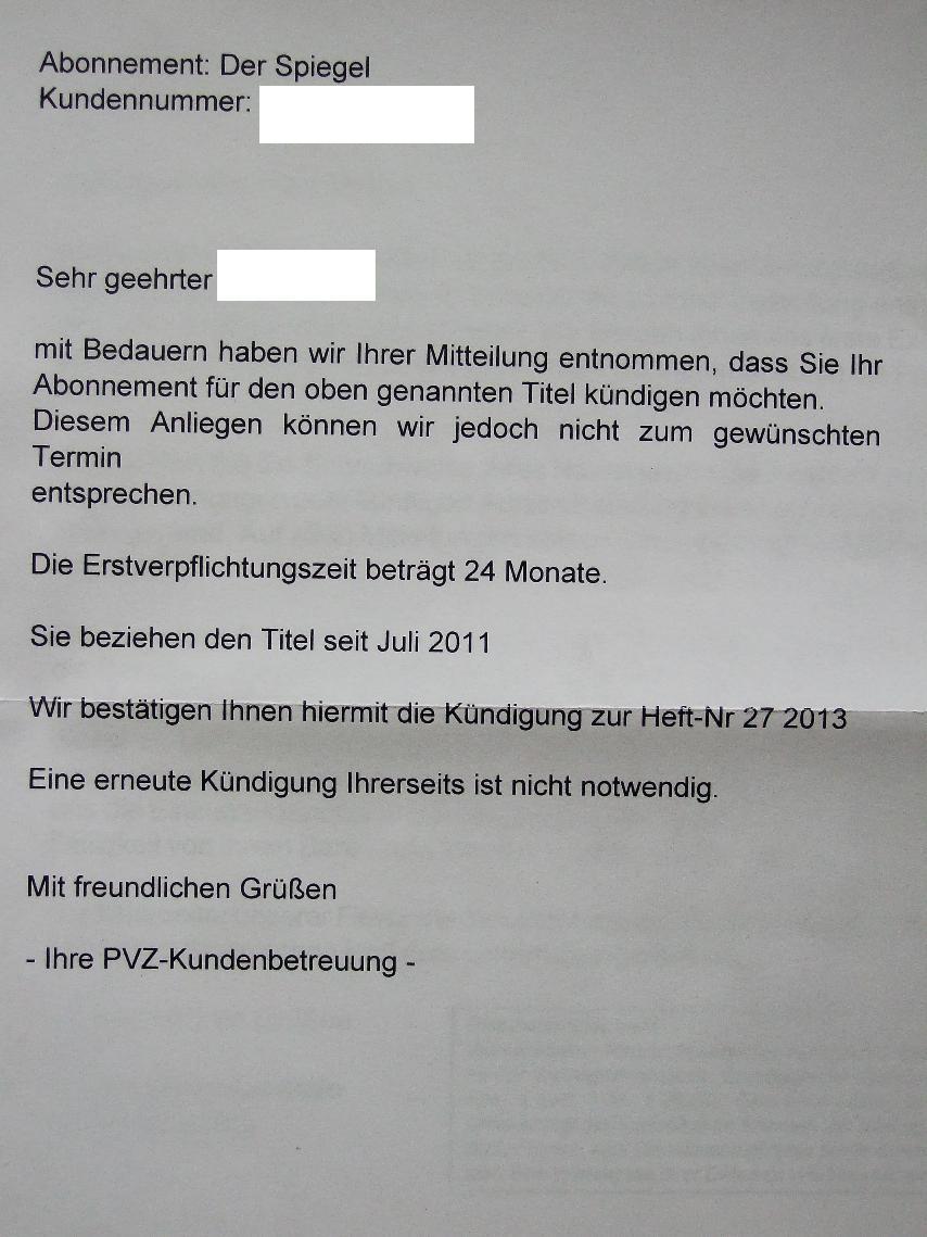 Um ihr spiegel abo zu kündigen schicken sie uns unter angabe ihrer auftragsnummer diese finden sie auf ihrem adresslabel zwischen und eine e mail an aboservice spiegel de oder rufen sie uns an.